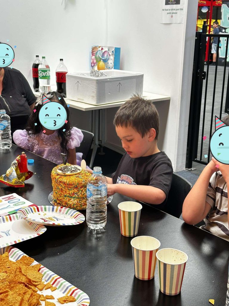 On the big day, Nasir was all smiles. He bounced, played, and laughed with his friends and was super excited for his Rainbow Friends-themed cake. He wasn’t just a guest at his own party; he was the host, greeting his friends and making sure they had fun.