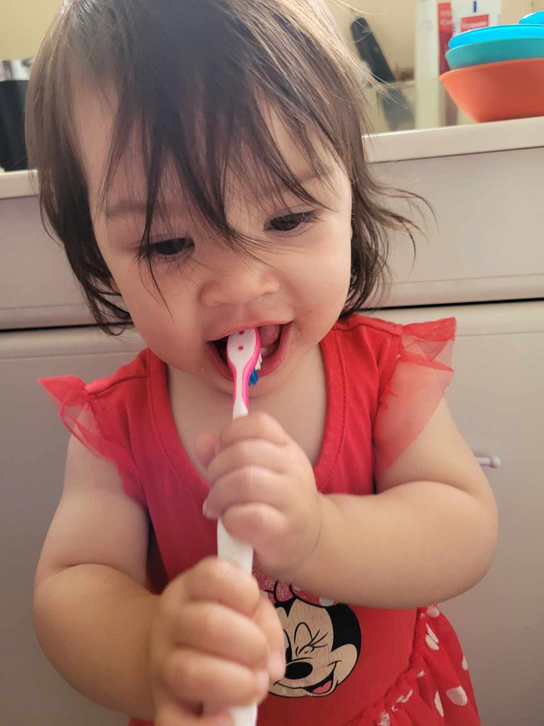 Model & Help with Brushing Teeth: Teach them how to brush properly by guiding their hand with their toothbrush, showing them how you brush your teeth, and even brush their teeth/floss for them.